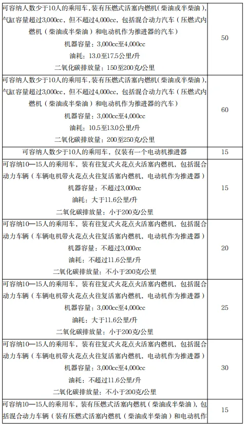 (1)机动车适用的税率如下: