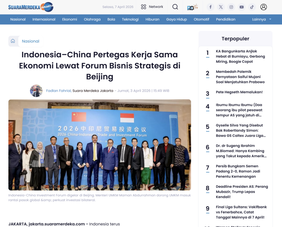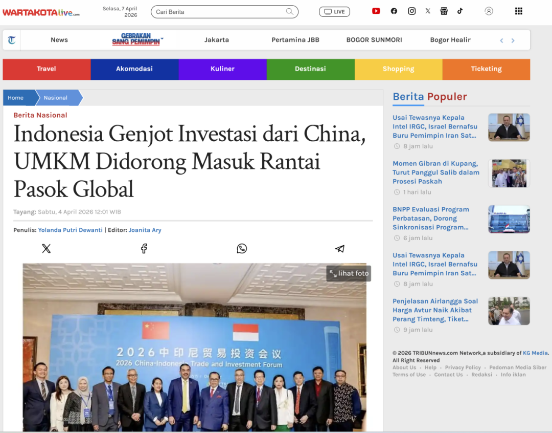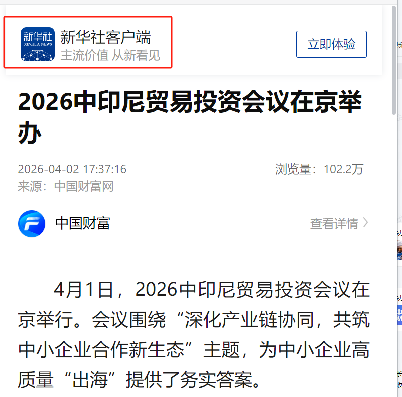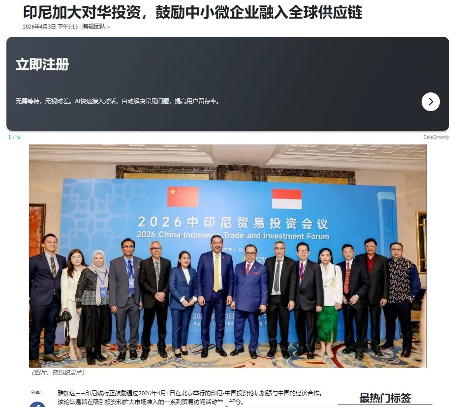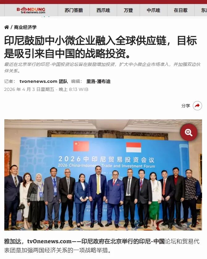 中印尼媒体广泛报道|CCTV等直击2026中印尼贸易投资会议